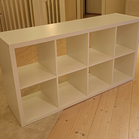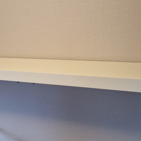 Vit hylla från ikea. Perfekt att ha i badrummet då man får plats med annat under första hyllplanet.
