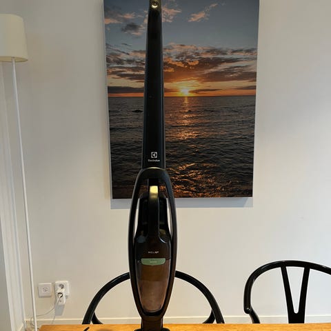 Electrolux Well Q6 2-i-1 dammsugare i vitt utförande. En kombinerad sladdlös skaftdammsugare och handhållen dammsugare med justerbara inställningar för olika rengöringsbehov. Lämplig för användning på både hårda golv och mattor. Batteridriven med sladd för laddning. Har vissa ytliga repor på sidan som syns på bilderna, men fungerar som den ska.