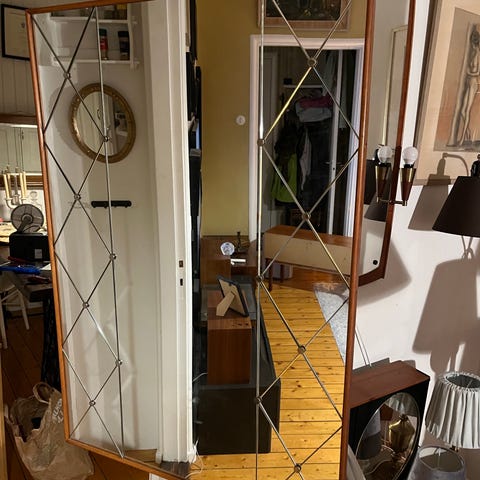 Spegel, ram i teak. Design J Holmer-Hansen för Risskov Spejle, Danmark.