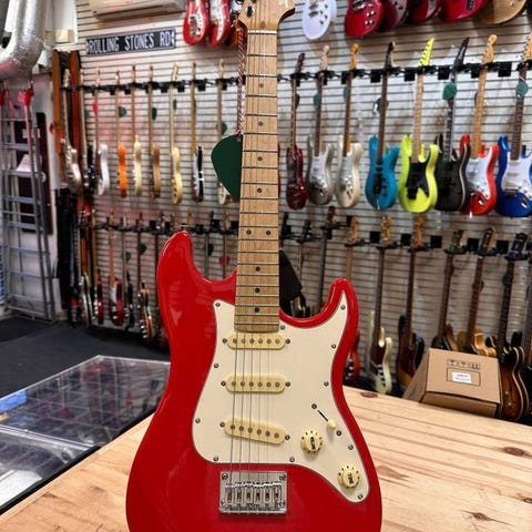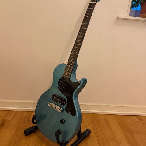 Jet modell 450. Har bytt stallmick men orginal mick följer med. Svarjarmen har jag tappat bort men finns att köpa för nån hundring. Låter bra och låg sträng höjd..Säljes pga för många gitarrer.
