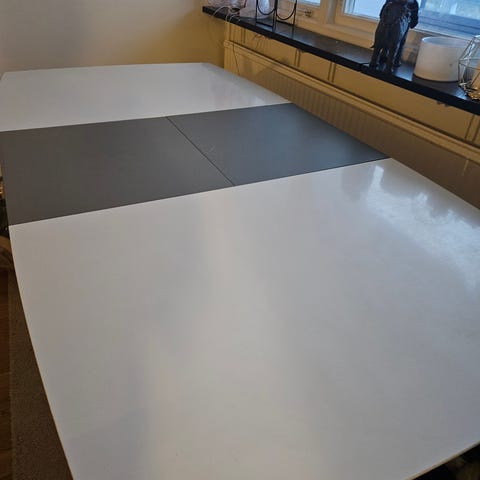 Snyggt matbord i matt svart metall och svart träskiva. Extra brett så man får plats med grytor och stekpannor i mitten.