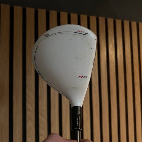 TaylorMade Firesole 7 golfklubba med orange och silverfärgad design. Klubban har en stabil skaft och ett grepp med Bubble Grip-märke. Passar för golfspelare som söker en driver med unik design och pålitlig prestanda.