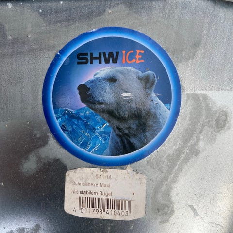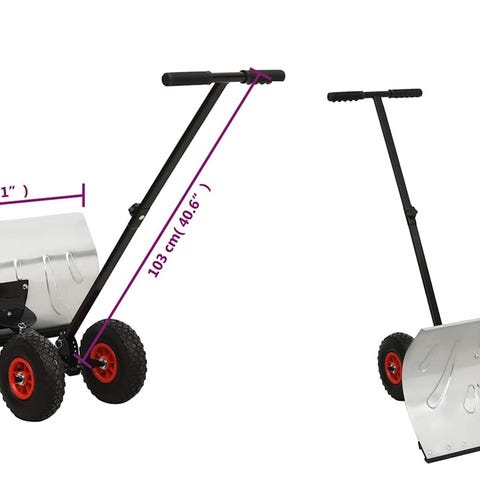 Snöskyffel med blått plastblad och skaft. Lämplig för borttagning av snö på mindre ytor. Enkelt och funktionellt verktyg för vinterbruk.
