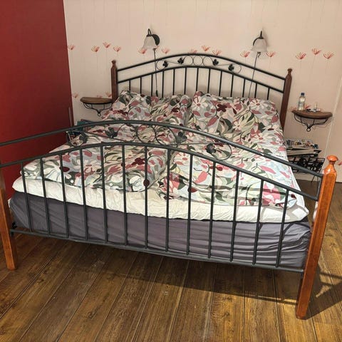 Säljer min sängram då jag inte behöver den längre och tänker att ställa sängen på ben istället så därför säljer jag ramen. Måtten är på sista bilden. Kommer vara ner monterad.