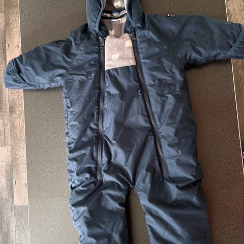 Jättefint overall som kan göras om till åkpåse vilket är superpraktiskt. I fint skick, aningen luddig på luvan, men ser ut som på bilderna☺️ Övervikbara muffar för händerna.