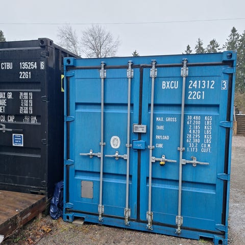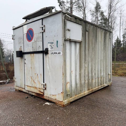 Standard 20-fots fraktcontainer tillverkad i stål. Använd för lagring och transport av gods. Robust konstruktion med dubbla dörrar för enkel åtkomst. Det finns inga vattenläckor.Ytan visar tecken på användning och väderpåverkan.