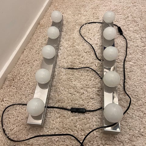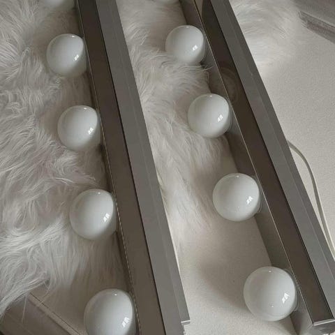 Två vägglampor som använts till ”sminkhörna”. 500kr styck exklusive lamporna. Säljer båda med lampor för 500kr.