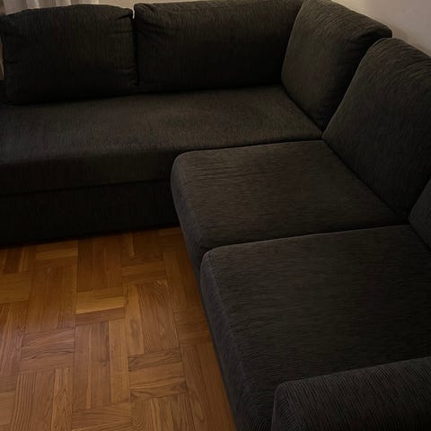 Soffan är rymlig, modern och väldigt bekväm — perfekt för vardagsrum, både för familj och gäster.