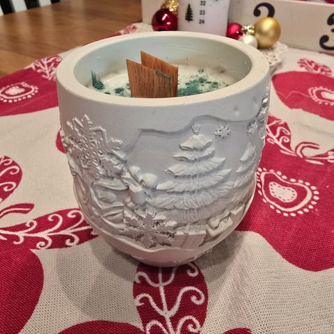 Upptäck våra charmiga, handgjorda doftljus med vinter och julkänsla. Varje ljus hälls varsamt i ett handgjort kärl av keramisk gips, vilket gör varje exemplar unikt och skapat med stor omsorg.