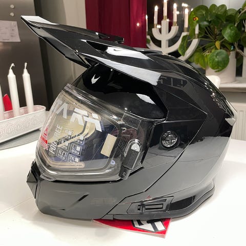 Airoh skoter/crosshjälm som är nästan oanvänd, kanske 3 gånger. Mycket lätt och bekväm. Bra ventilationsöppningar för luftflöde. Skön även på vintern. Storlek XXL. 1220g. Scott googles kan medfölja.