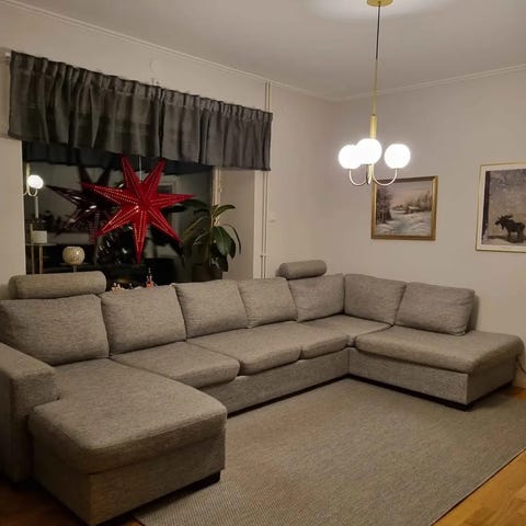 Bra skick, super skön soffa, några fläckar därav priset