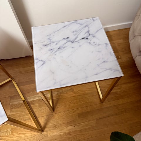 Sideboard från Decotique, inköpt på Royal Design. Svart/vit marmor. 62x105 cm.