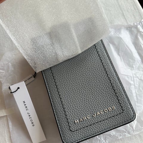 Brun Marc by Marc Jacobs plånbok med dragkedja och handledsrem. Plånboken har flera fack för kort och sedlar.