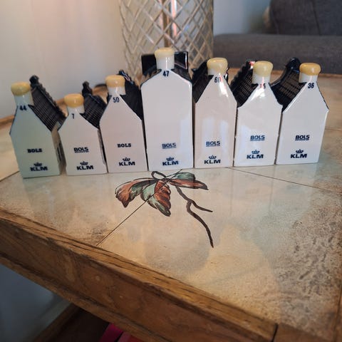 35 st KLM hus av Blue deftporslin samlade under många års resande säljes nu pga flytt/platsbrist. Samlingen innehåller även hus nr 100.