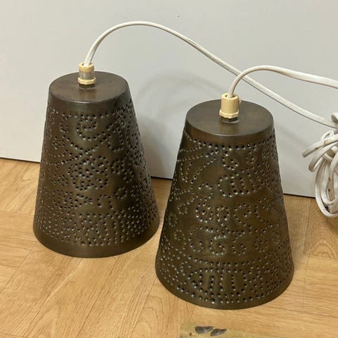 2 st taklampor /fönster lampor med randig glasskärm