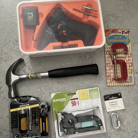 Inkl. snabbfäste för verktygshållare, 3st hållare, samt diverse tillbehör enl. bild.