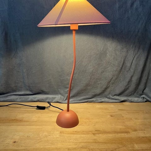Eos golvlampa med vit fjäderdesign. Lampan har en metallfot och en dekorativ skärm av fjädrar, vilket ger ett mjukt och diffust ljus. Passar för användning i vardagsrum eller sovrum som en dekorativ ljuskälla.