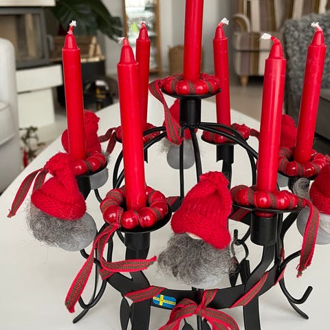 Komplett med juldekoration och sommardekoration. Stearinljus, vita, blå och 2 satser gula.