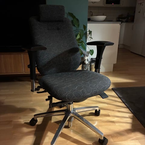 Snyggt o praktiskt datorbord. Vitt o björkfanér samt silverfärgad stålram. Hjul baktill vilket underlättar vid städning o flytt. Praktisk kabelgömma i tvättbar textil.