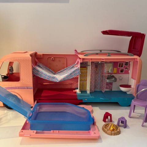 Husbilen kan fällas ut och få flera funktioner – bland annat en pool som kan fyllas med vatten, ett badrum med dusch, ett kök samt ett sovrum på taket.