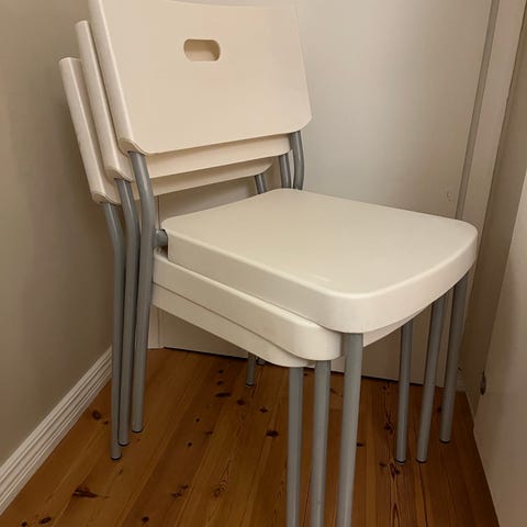 IKEA hopfällbara stolar i vitt. Praktiska för enkel förvaring och transport. Passar för olika användningsområden såsom extra sittplatser vid matbord eller vid evenemang.