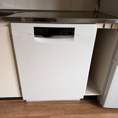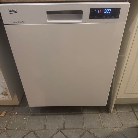 Beko underbyggd diskmaskin med standardstorlek och vit färg. Maskinen är avsedd för inbyggnad under bänkskiva och har flera korgar för diskhantering. Tillverkad i material lämpligt för köksmiljö.