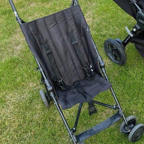 inplastad madrass, "solskydd" samt extra överdrag till.