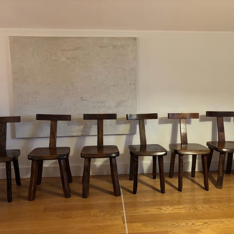 Stolarna är i brukat men fint skick med naturlig patina och mindre bruksspår som ger karaktär (se bilder). Stabil konstruktion i pulverlackerat stål – byggda för att hålla i generationer.