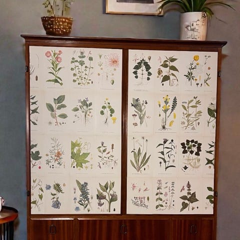 Svensk tenn inspirerat antikt skåp klädd med Nordens flora. Ytbehandlat och i mycket bra skick utan skador. Nyckel finns.