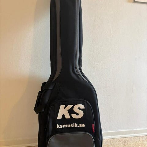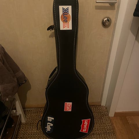 Gitarrtillbehör i form av ett gitarrfodral. Fodralet är utformat för att skydda gitarrer under transport och förvaring. Det har ett yttre hölje av hårdare material och ett inre foder av mjukt tyg för att skydda instrumentet mot repor och stötar. Fodralet har handtag för enkel bärbarhet.