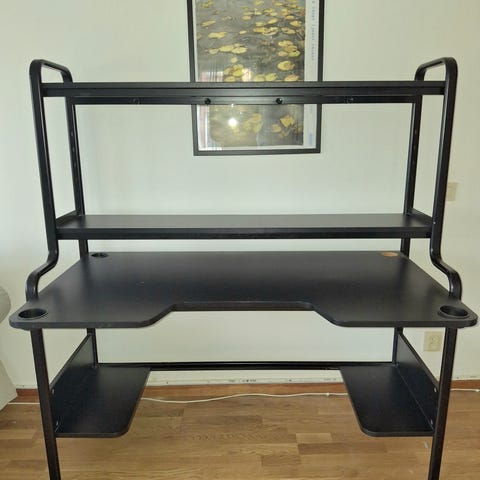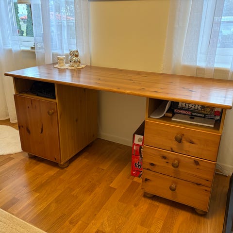 Vi sälja vårt skrivbord. Skrivbordet är i gott skick och vi säljer det med lådhurtsen på vänster sida samt två ben på höger sida.