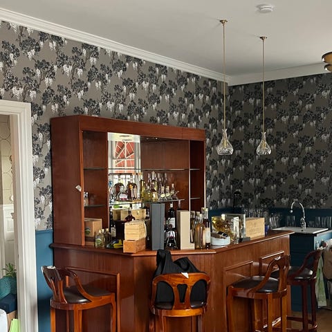 En fantastisk bardisk i mahogny och med stenskiva / mässingdetaljer, kommer från ett italienskt fartyg, 1950-tal.