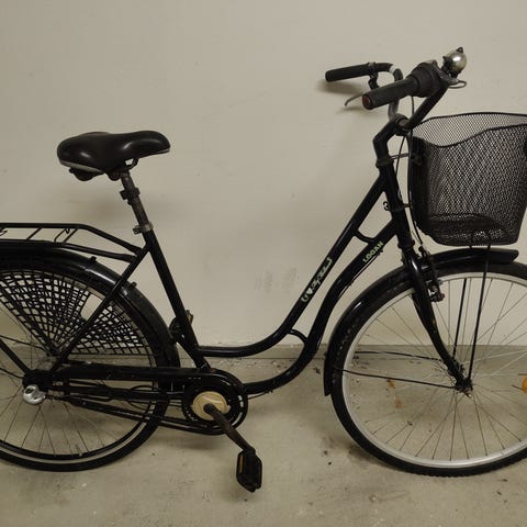 Monark damcykel i blå färg. Cykeln är anpassad för kvinnor och har en ram med låg insteg för enkel på- och avstigning. Utrustad med pakethållare och kedjeskydd.