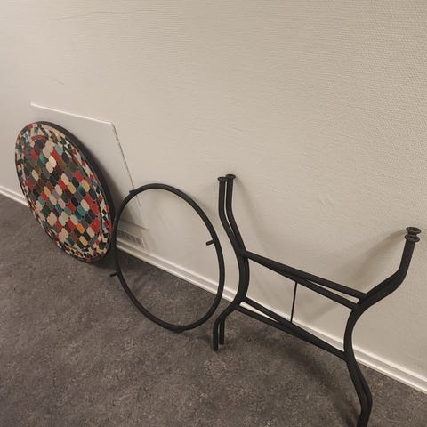 Leran formas för hand, torkas i solen och bränns i traditionella ugnar. Därefter glaseras plattorna med naturliga pigment och bränns igen, vilket skapar de djupa, varierande färgtonerna. Varje kakelplatta blir unik, och bordet monteras för hand.