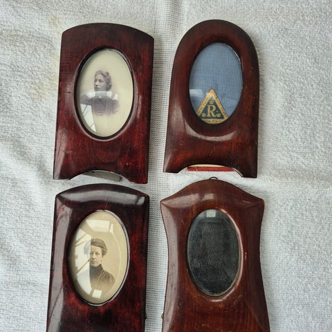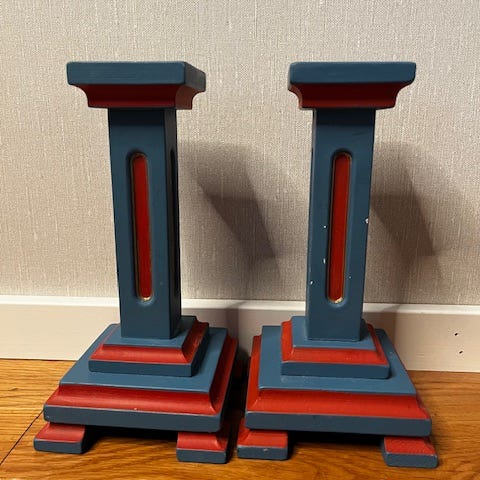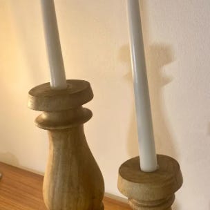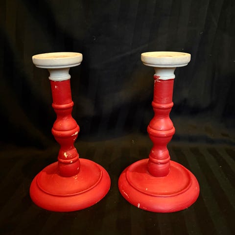 Gamla ljusstakar av trådrullar i trä. 2 st