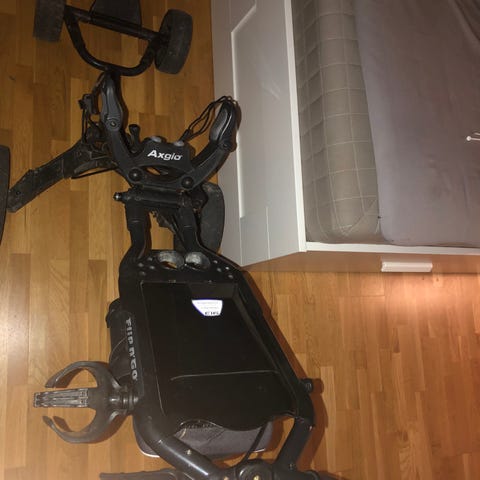 Golfvagn med tre hjul, utformad för att underlätta transport av golfklubbor på banan.