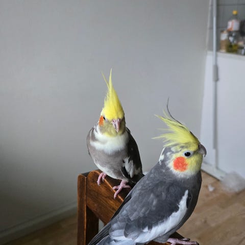 Båda är hand tama och gillar att vara med dig vart du än går. Säljer helst båda fåglarna tillsammans. Vill att de ska komma till någon som låter de flyga fritt då de ska inte sitta i bur hela dagarna.