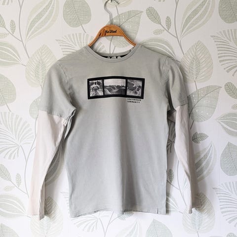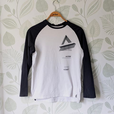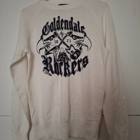 Nästan oanvänd, vit med gråa texter och bilder (i bilderna syns lite som grå). Storleken är 160 cm.