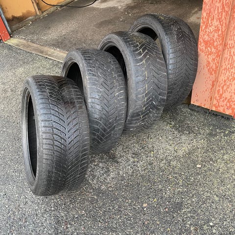 4 stycken begagnade dubbdäck NOKIA 5 mm kvar i mönstret. Har suttit på volvo xc70 som hade fel hjulinställning,lite slitna i kanten ,men kan ge många mil. till.