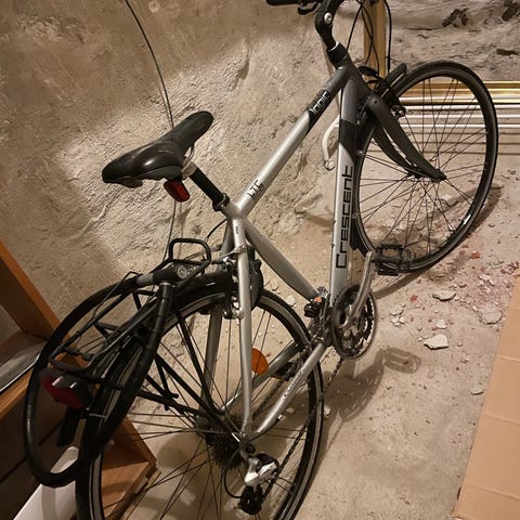Crescent Hybridcykel för unisex med ram i silver och svarta detaljer. Dock behöver växlarna en översyn. Lätt att fixa!