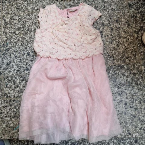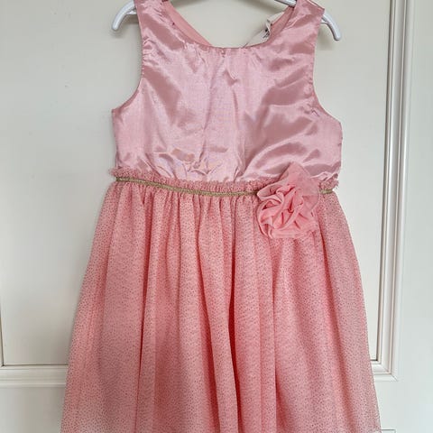 Festklänning från Lindex i storlek 110. Klänningen är rosa och tillverkad i tyll. Den har paljettdetaljer på överdelen och en dragkedja i ryggen. Perfekt som nyårsklänning och till kalas.
