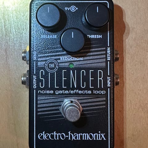 Tämligen ovanlig och absurd pedal från electro-harmonix. Den ser sliten ut men låter precis lika märkligt som den ska. Om du, som jag har gjort, tänkt att köra den in i pedalbordet via en parallell input så behöver du ha något som kan strypa volymen från denna pedal då den med allra största sannolikhet är ofantligt mycket starkare än signalen från ditt instrument. Jag har, åtminstone i skrivande stund, en passiv attenuator till salu här på blocket.