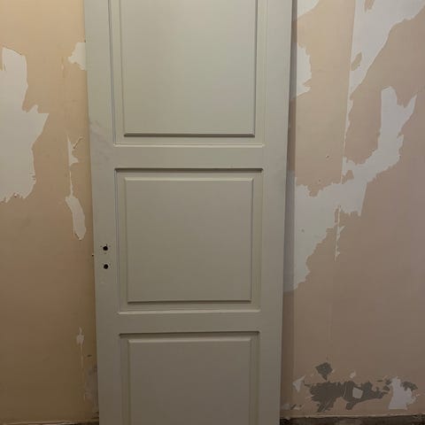 Säljer en vit trädörr, 95 bred och 203 hög saknar handtag