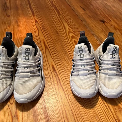 Ett par adidas träningskor som enbart använts inomhus på idrotten (vit sula). Lätta att dra på foten.