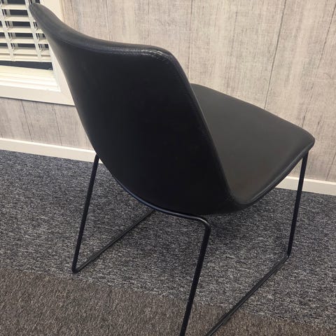 6 stycken FLY stolar i mörkt skinn och benställning i kopparfärg
