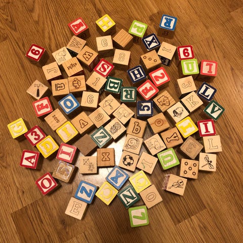 Träklossar / domino med förvaringspåse färgglada träleksaker