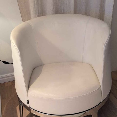 Alfredo Häberli (designer för Vitra, Offecct) fåtöljer. Limiterade få gjorda. 4 stycken svarta, samt runt designers bord Bond. Bord kostade 15.000 nytt. Fåtöljerna 28.000kr/st Dessa i svart läder gjordes i få exemplar (vanligare i tyg) speciellt för oss av svenska Offecct. Vi besökte designern i Schweiz innan.