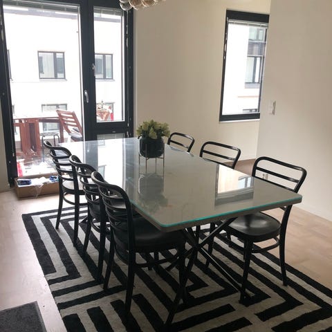 Matborden från No Early Birds tillverkas för hand av skickliga hantverkare på svenska snickerier. Det eleganta kryss stativet gör att borden är funktionella och estetiskt tilltagande. Bordet kan förlängas med NEBs konsolbord.