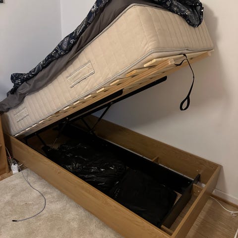 Ramsäng komplett med madrass. Två stora förvaringslådor. Madrass storlek 200x90cm