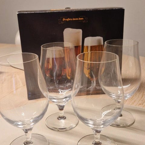 Orrefors glas i olika modeller. Glasen är tillverkade i klart glas och kan användas för servering av drycker vid olika tillfällen.